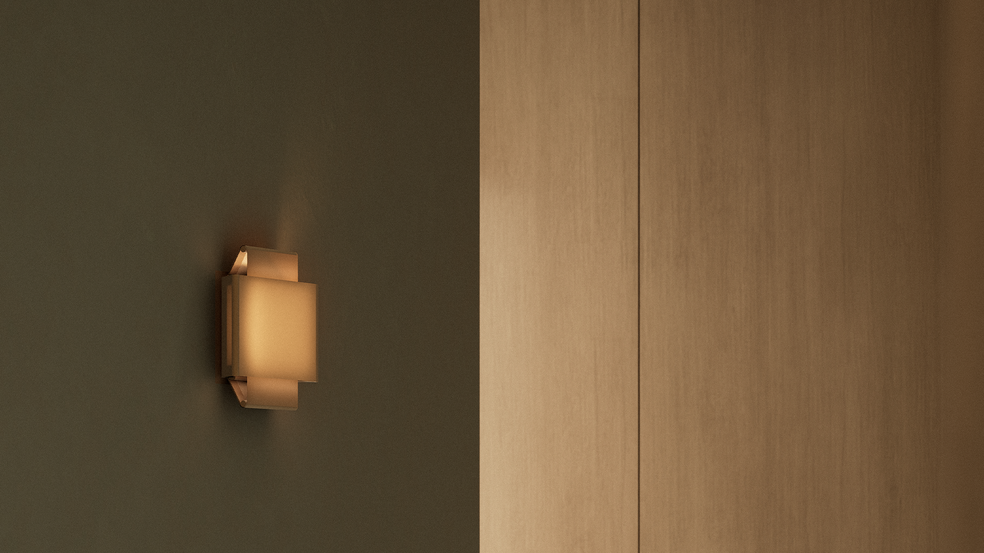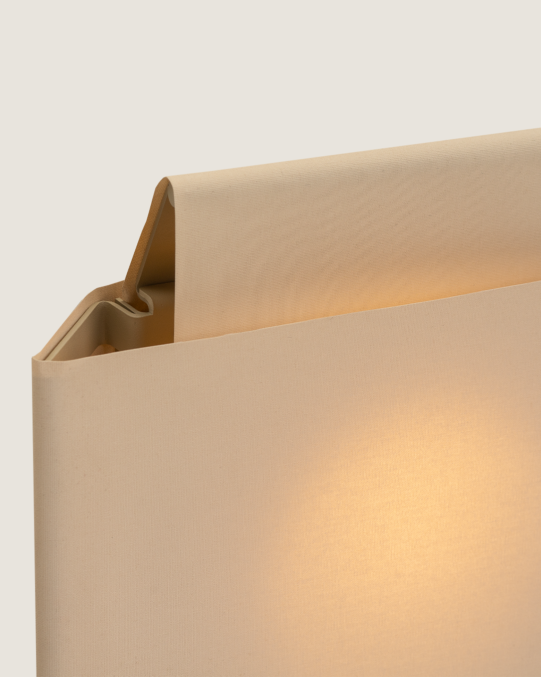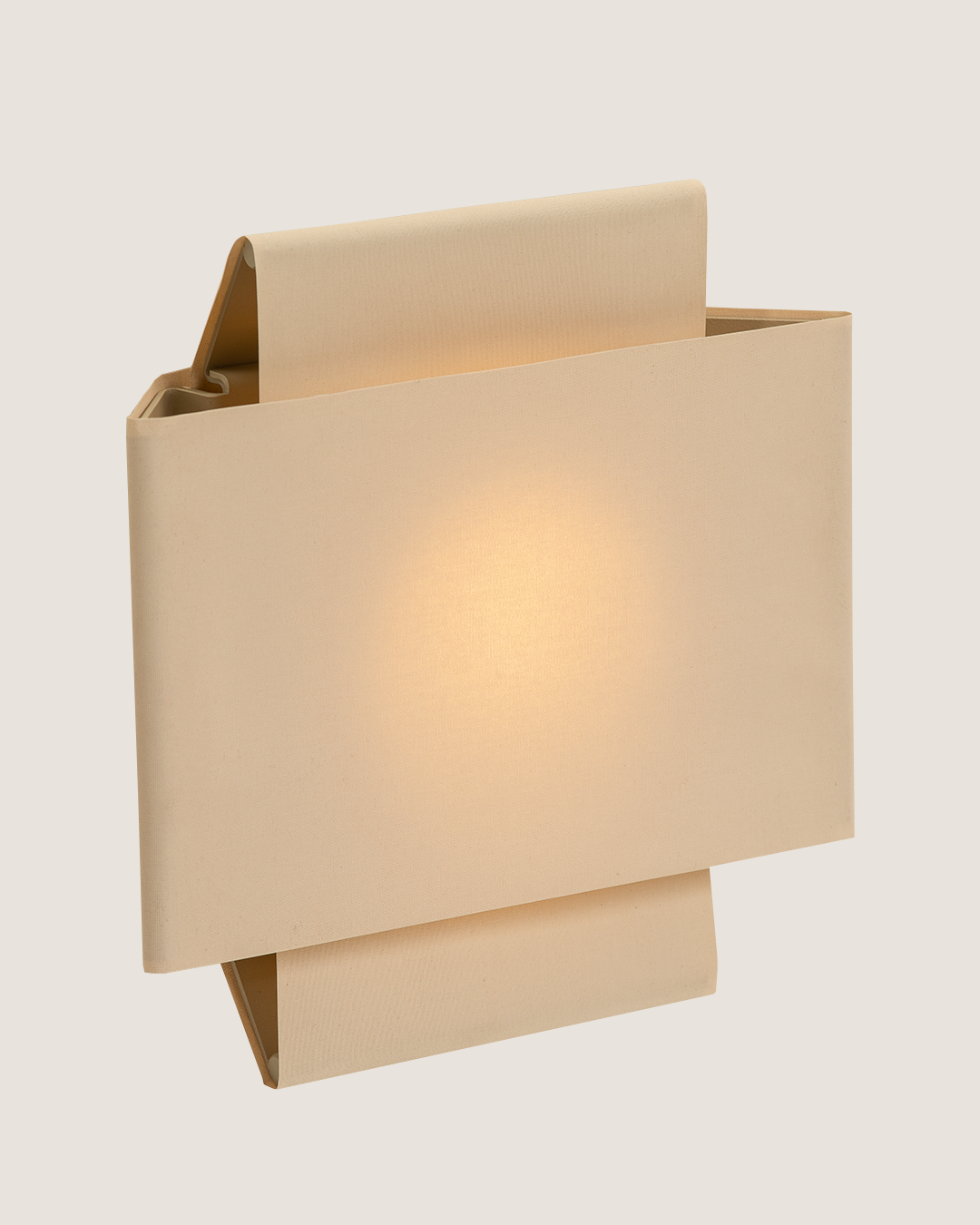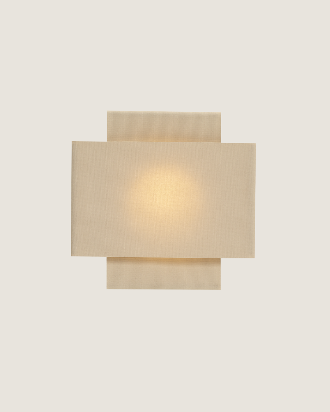 Lámpara de aplique de luz difusa compuesta por una estructura metalica que tensa dos pantallas textiles entrecruzadas generando un efecto de luz en el centro. Otorga luz ambiente.