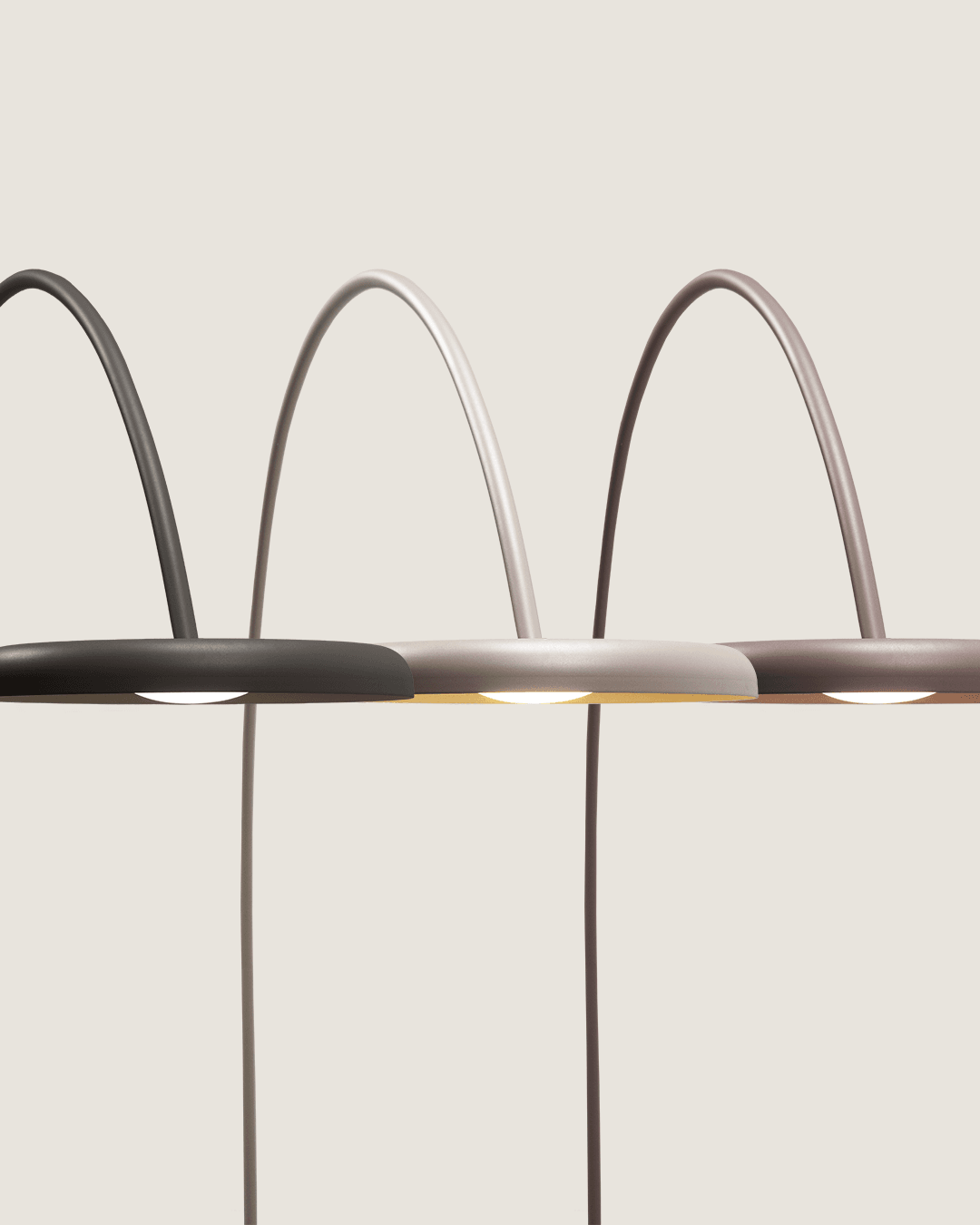 Opción 1: Conjunto eléctrico de 250cm de largo total, con interruptor de pie con regulador dimmer del mismo color de la luminaria, con posibilidad de ajuste de la intensidad del flujo luminoso.