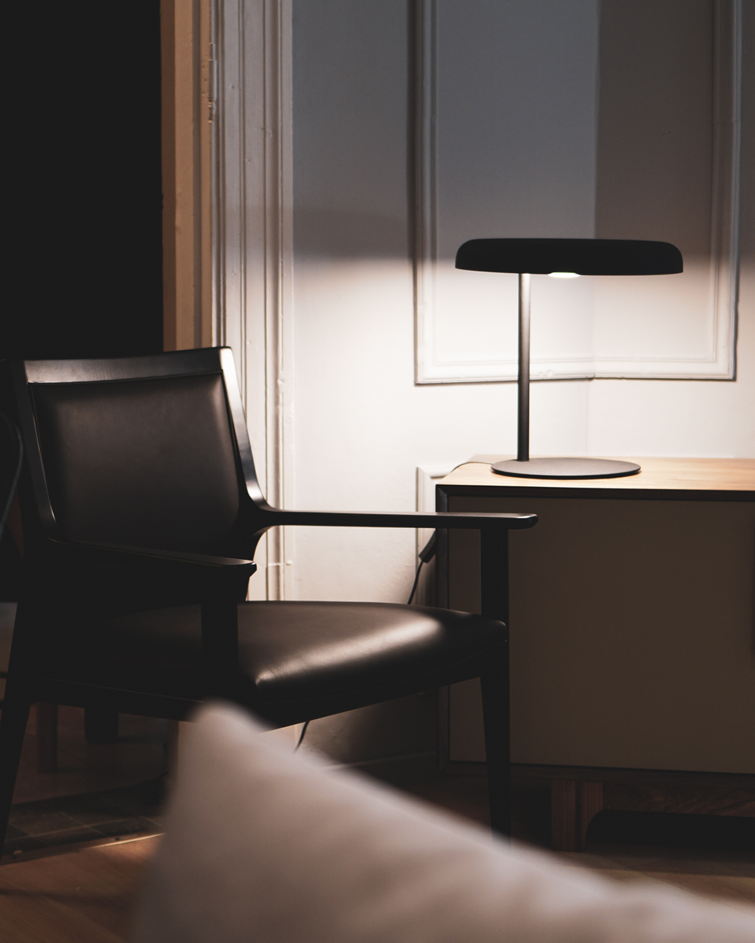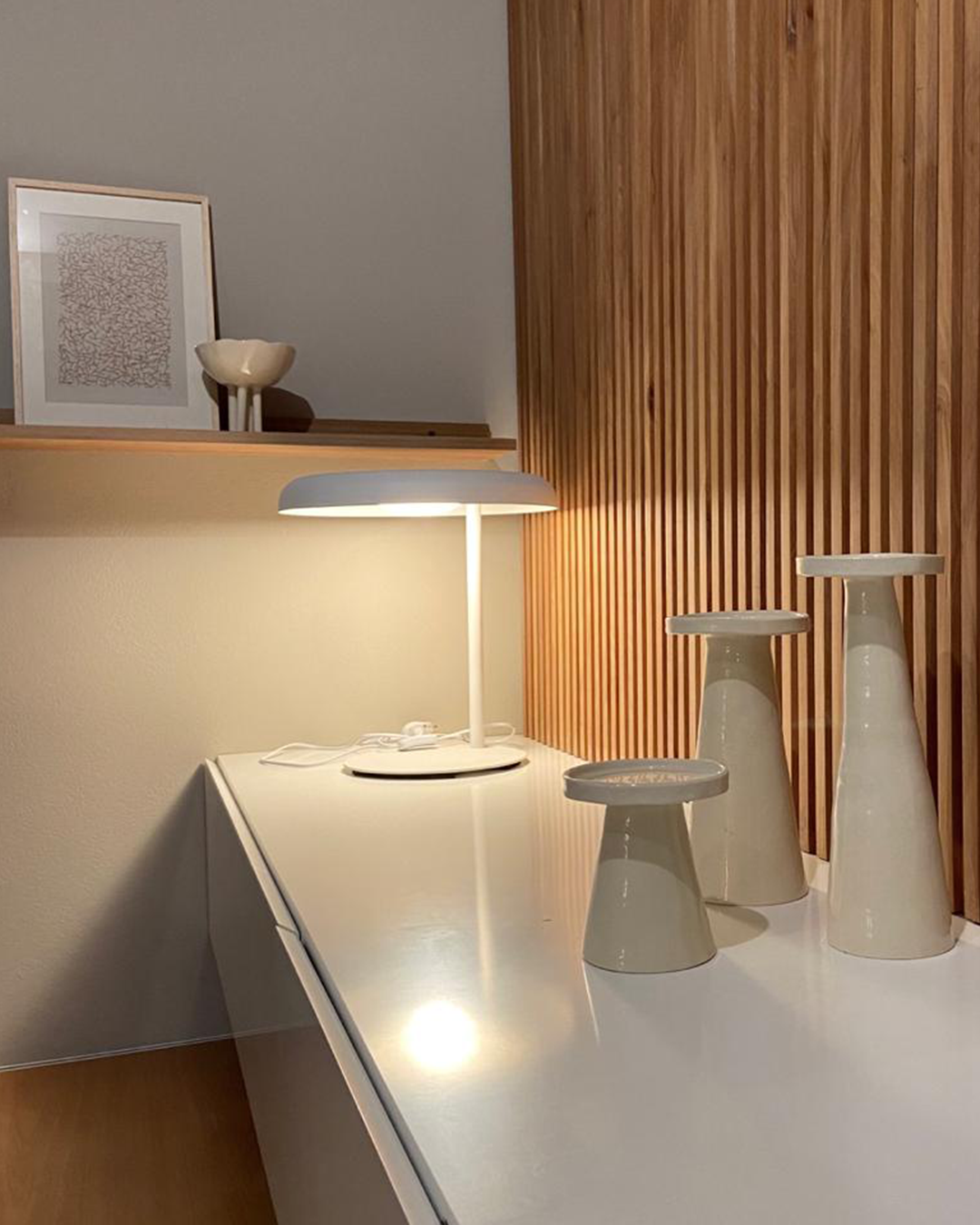 En esta lámpara la luz se expresa en forma de gota usando el lenguaje de la armonía de la naturaleza. La belleza de sus suaves líneas junto con el efecto de la luz generan una calidez perfecta. Lámpara de mesa de luz semi directa. Pantalla en aluminio. Difusor de metacrilato esmerilado. Cable eléctrico blanco o negro con interruptor on/off.