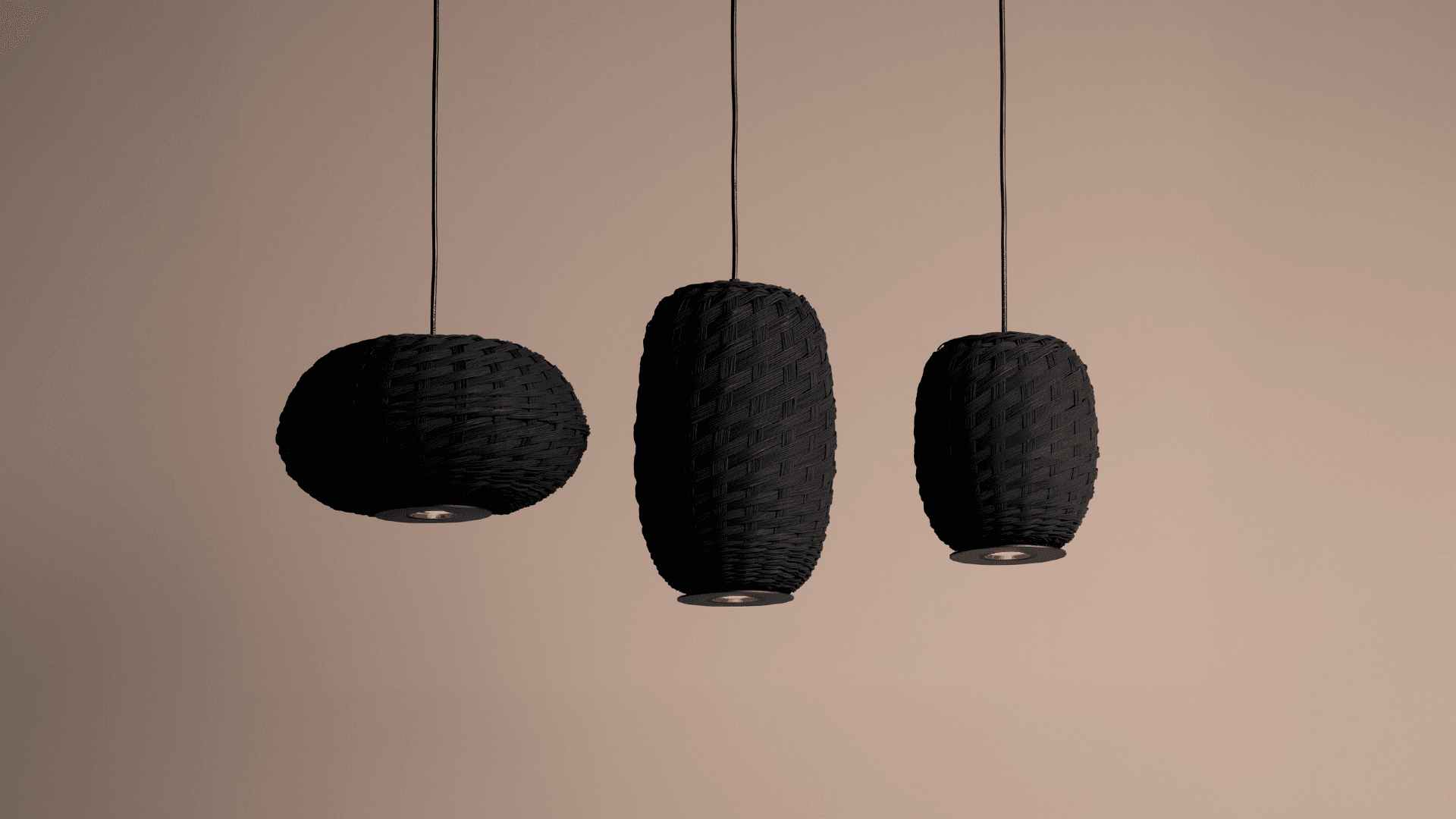 El paisaje del valle de Catamarca en Argentina surge como desafío estético de siluetas, ondulaciones y valles que descansan al pie de la cordillera de los Andes. Allí crece el “simbol”, una fibra silvestre que protagoniza este ejercicio de cestería contemporánea. Atrapar el paisaje en la forma, un acto que nos enfrenta a la simplicidad y honestidad brutal del material con líneas suaves como si se formaran de la erosión. Lámpara de suspensión de luz semi directa. Cuerpo en tejido de fibra natural «simbol» hecho a mano y disco de aluminio. Tensores de acero galvanizado y cable blanco o negro.